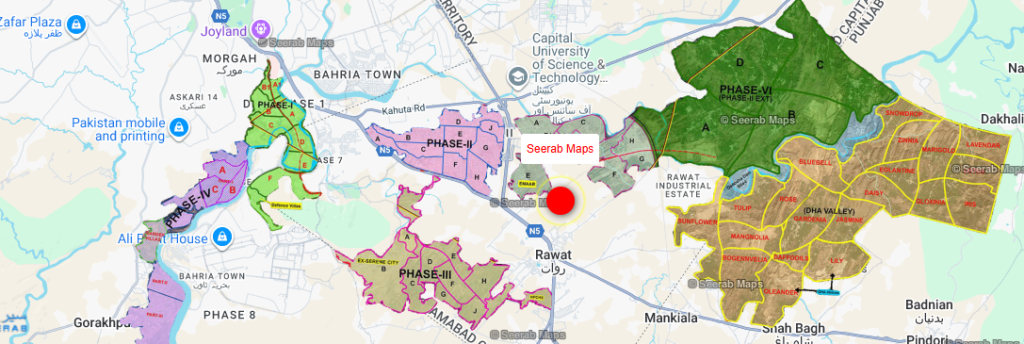 DHA Homes Islamabad is strategically located, with other phases of DHA on its western side and Rawat on the eastern side. The society is also close to prominent residential projects such as Zahraj Housing Society, River Gardens Housing Scheme, Bahria Town Islamabad, and Bahria Town Rawalpindi.