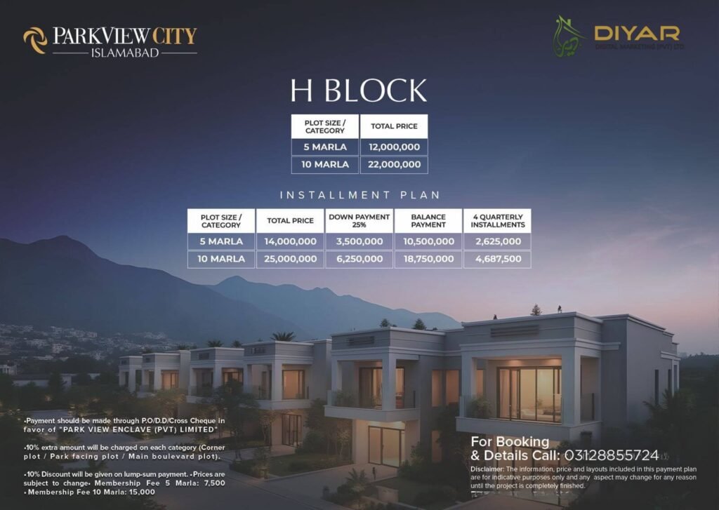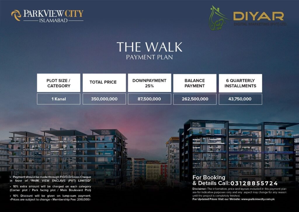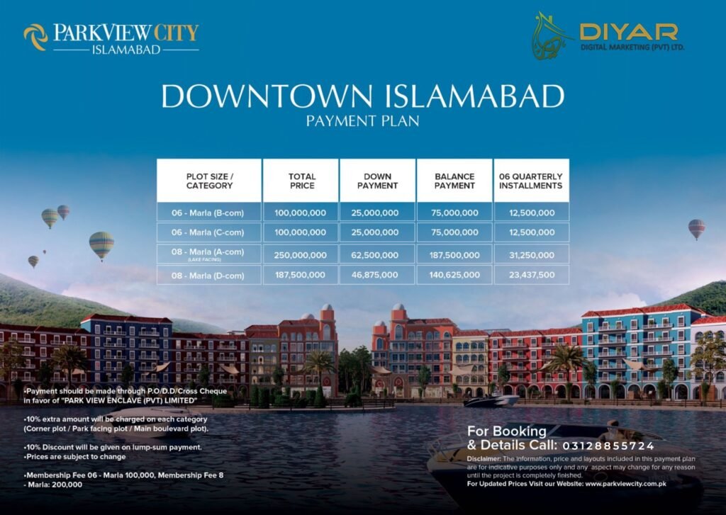 Pay the booking amount via cheque or pay order in favor of Park View City Islamabad, following the latest payment procedure.